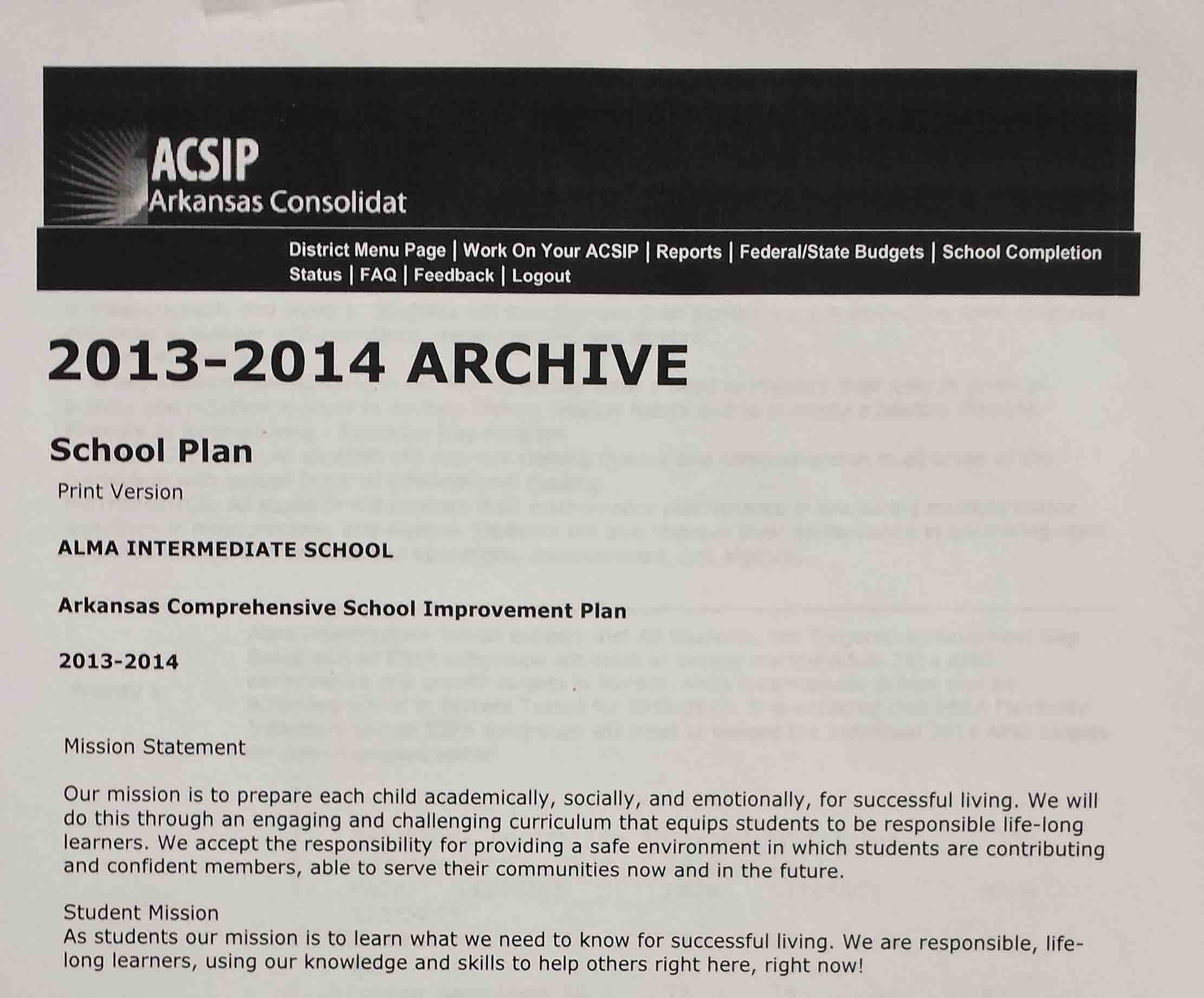 ACSIP still stands for Arkansas Comprehensive School Improvement Plan. I think the name should be changed to something like ARSIP for Arkansas Responsive School Improvement Plan. We should then rise up and say “NO!” when the inevitable additions begin to flow down from Little Rock. We must say, “We will NOT put that in our school improvement plan. It is a living document that we are revising based on best practices and the needs of our students, not what some external entity dictates.”