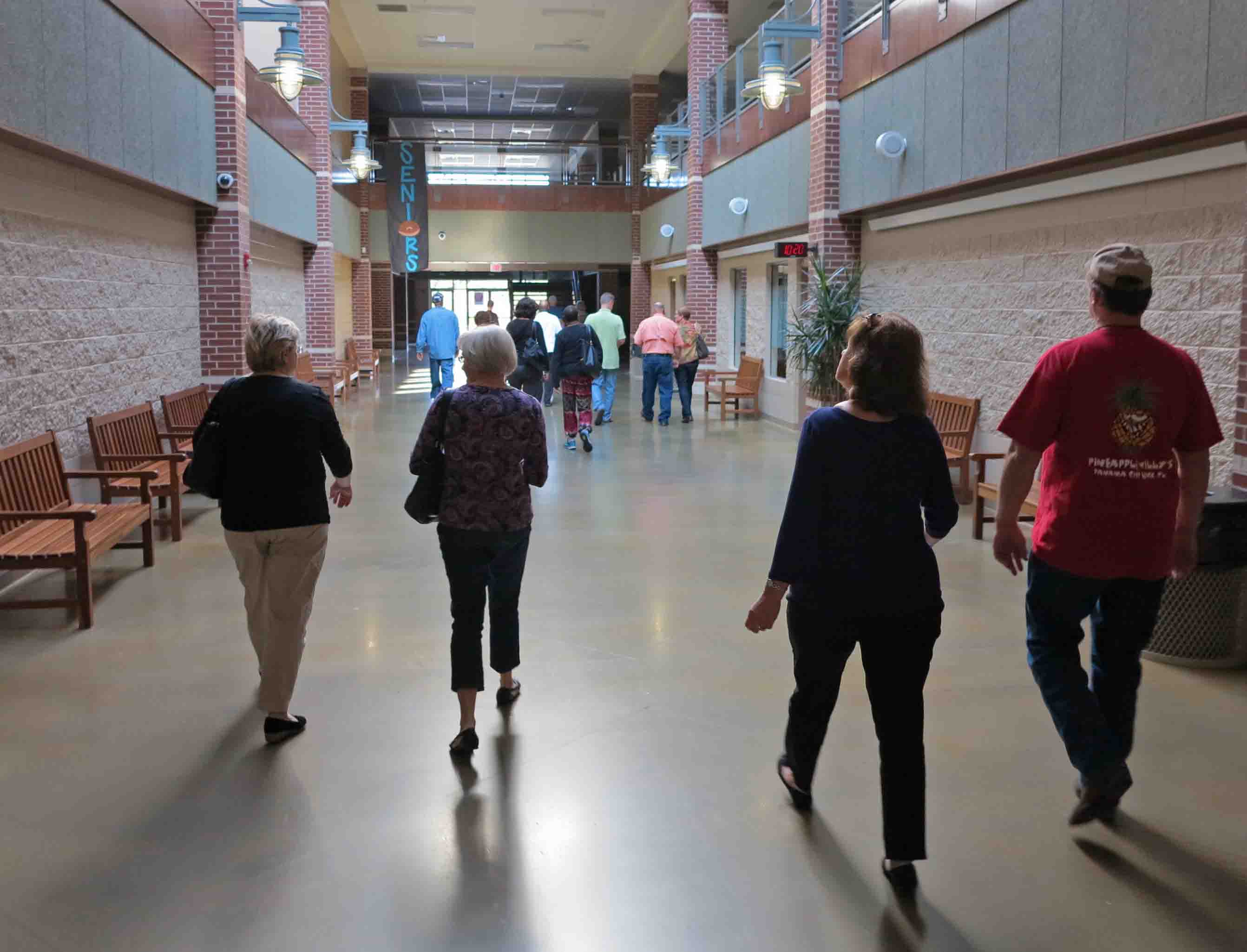 The tour took us down several hallways. I commented that it was like a mall, with wide, open hallways, and windows into classrooms. Alva explained that administrators can stand at hallway intersections between classes and cover all hallways to see that transitions are smooth and safe. They are also able to observe teachers watching transitions between classes.
